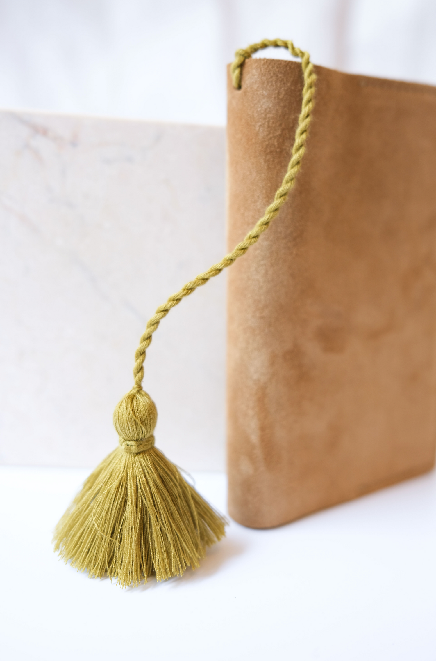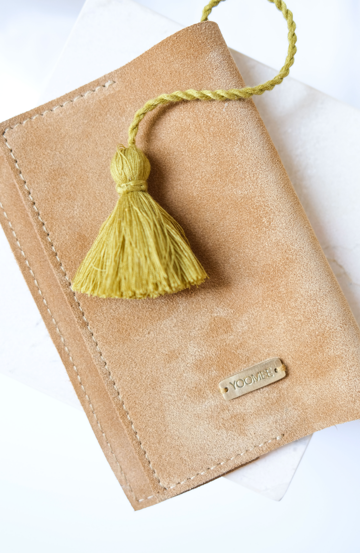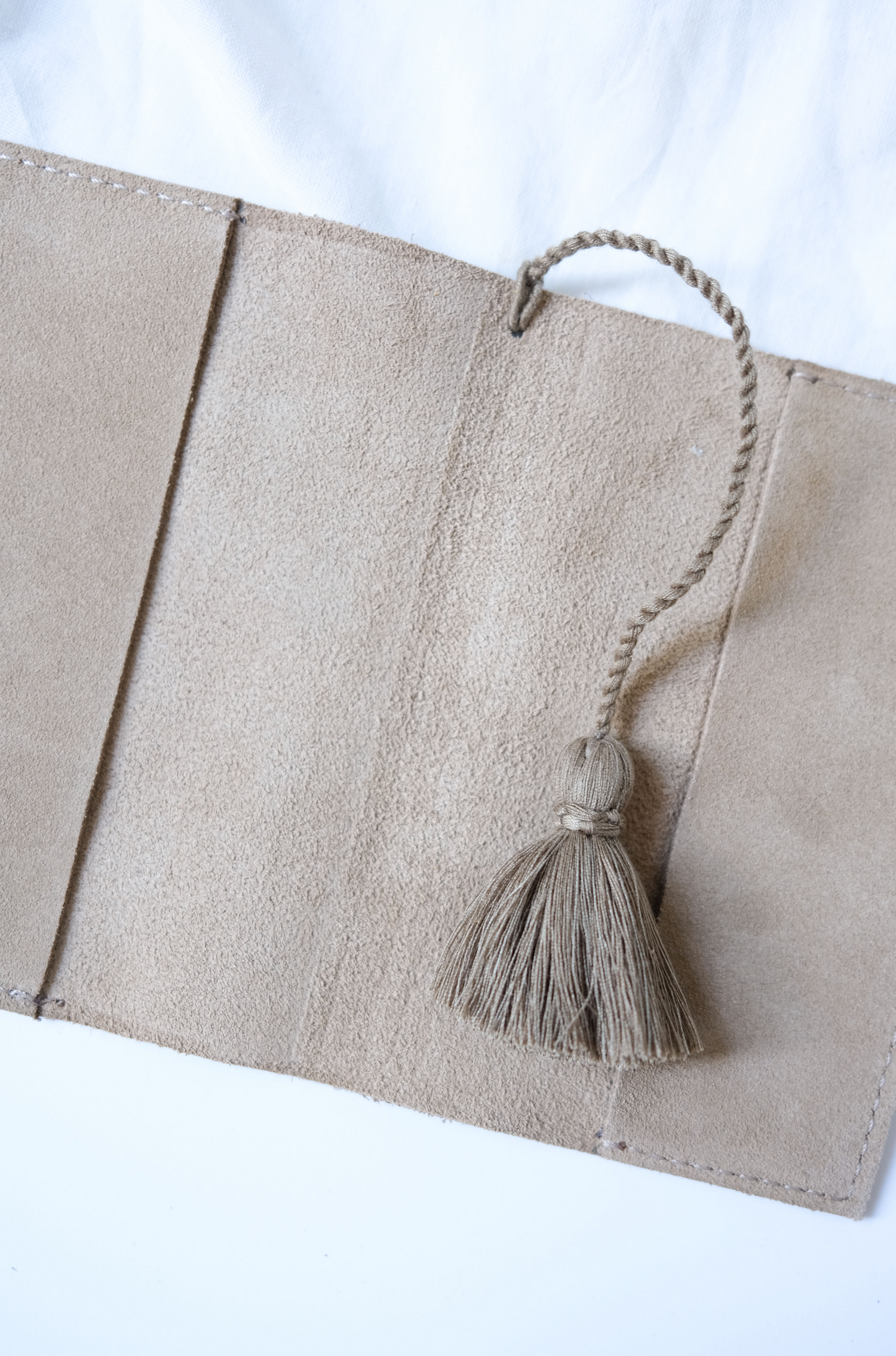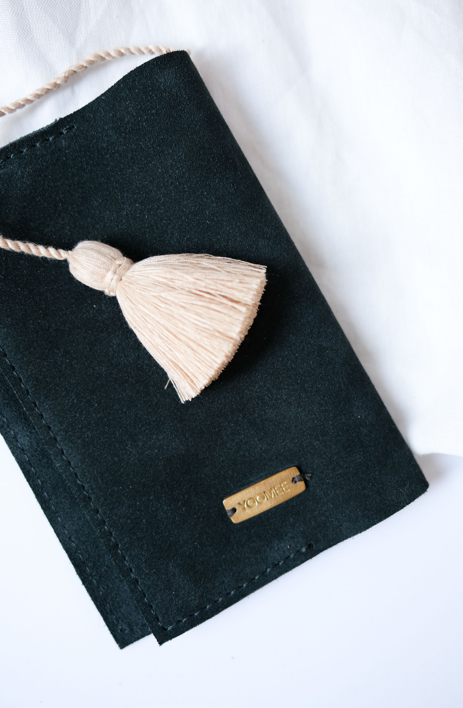 this leather case is made from rest materials in collaboration with our leather maker youssef and the women's cooperative that makes the tassel by hand. the colors can vary slightly.