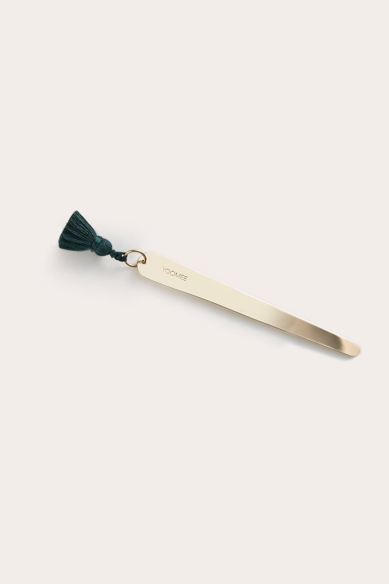 this bookmark is made by our skilled metalworkers and the colorful tassel comes from our women's association.