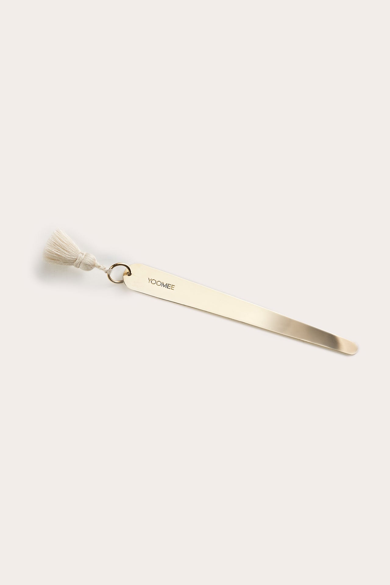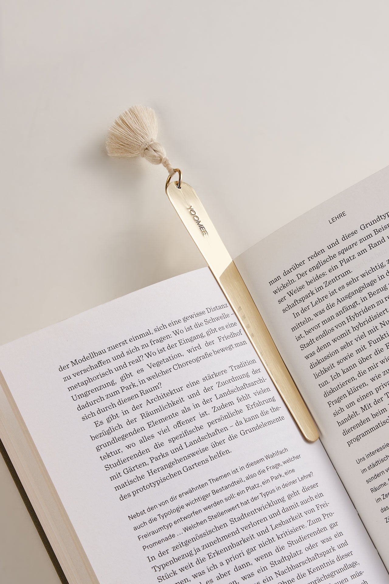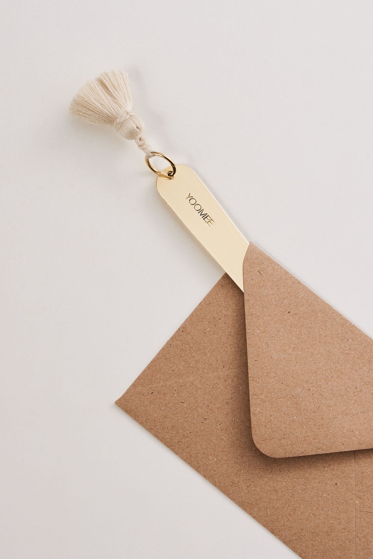 this bookmark is made by our skilled metalworkers and the colorful tassel comes from our women's association.