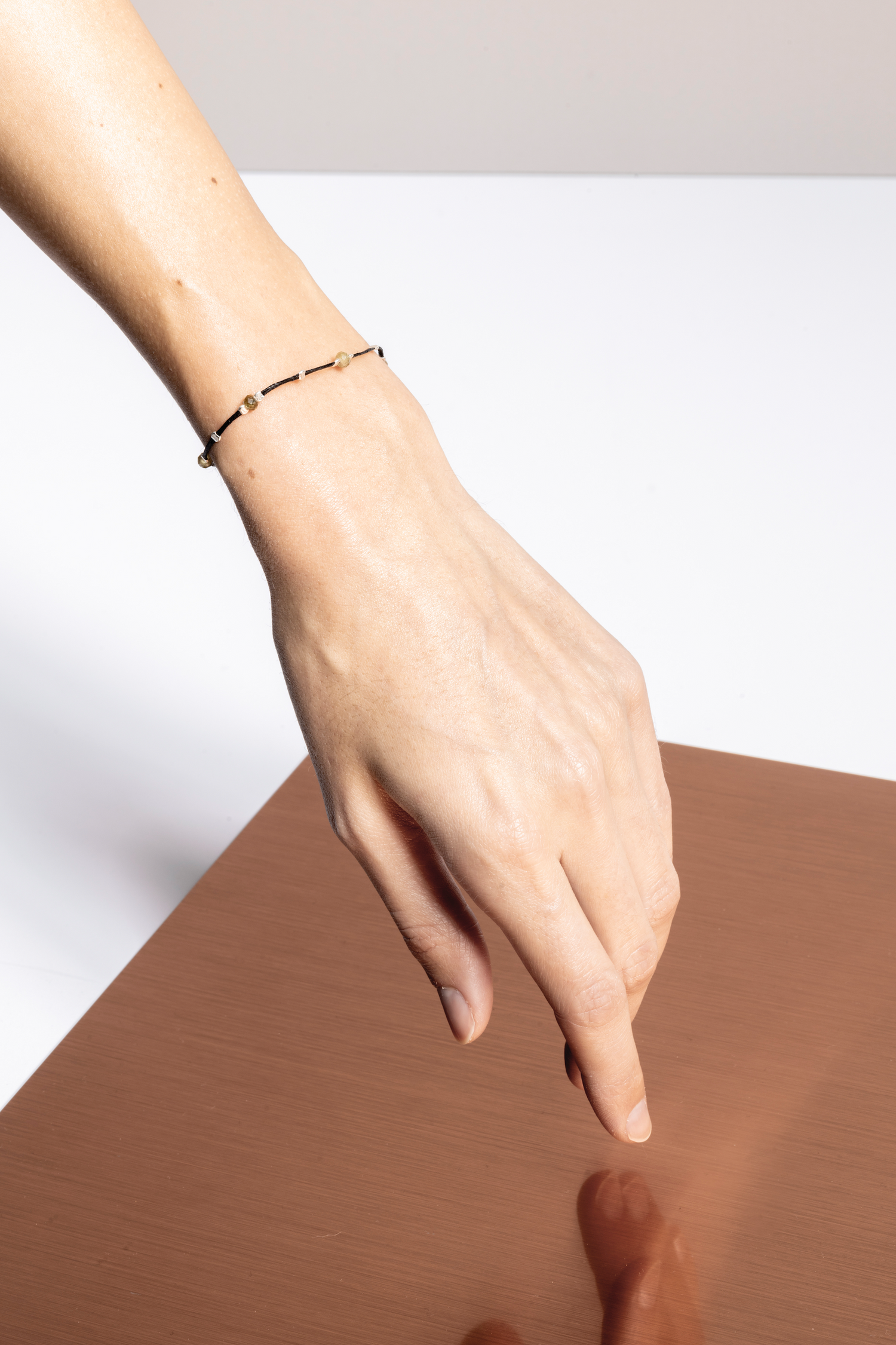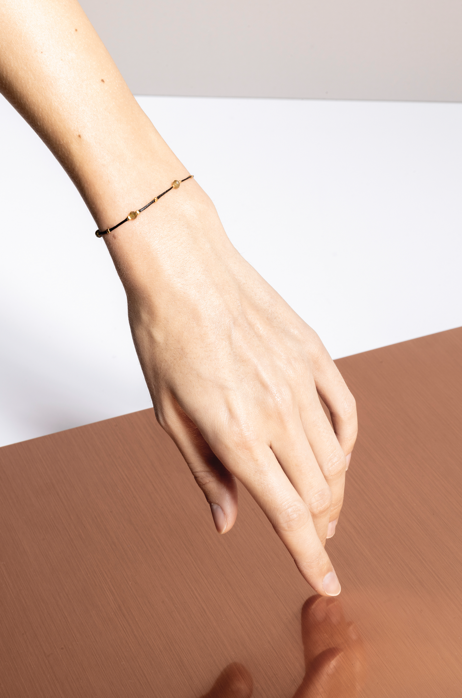 our bracelets should become a part of you. thanks to the fine materials they can be worn anytime, anywhere. they are made from waxed thread, making them water resistant.