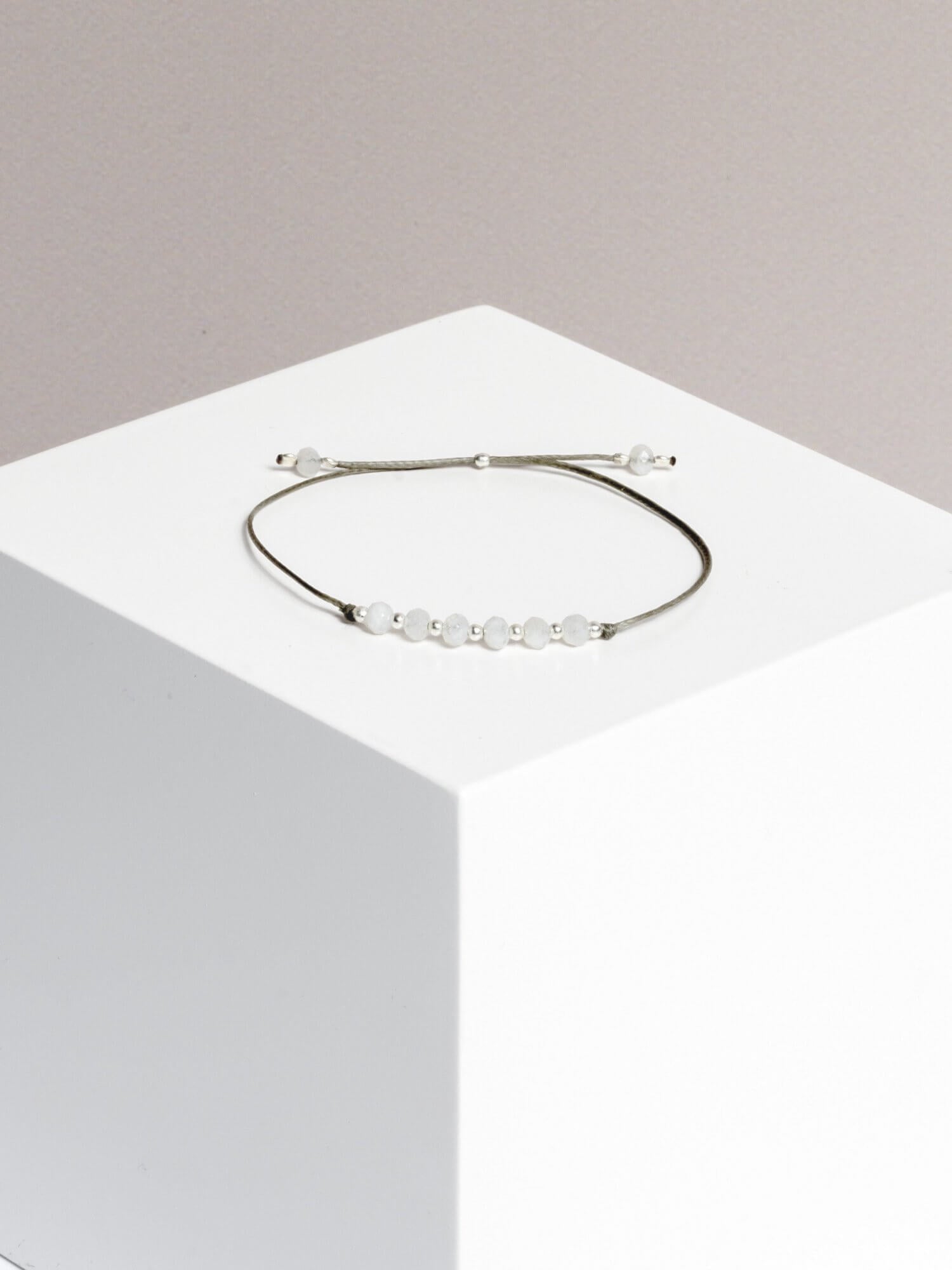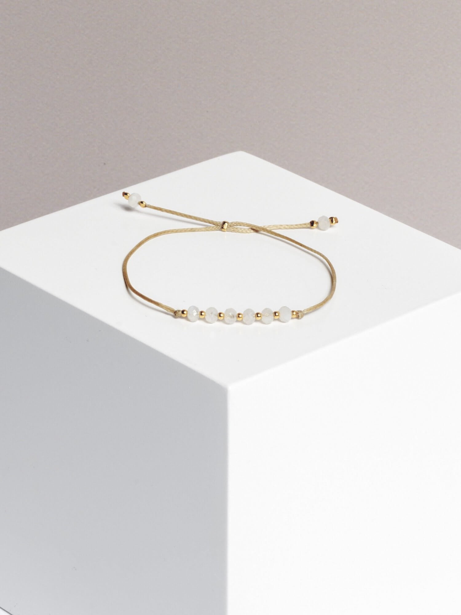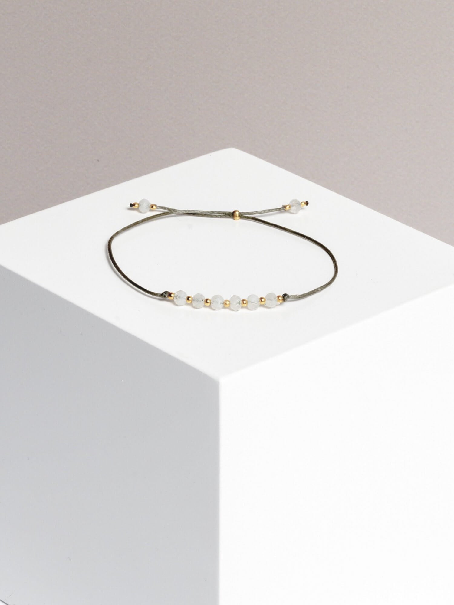 material: waxed thread, moonstone, gold plated / 925 silver beads