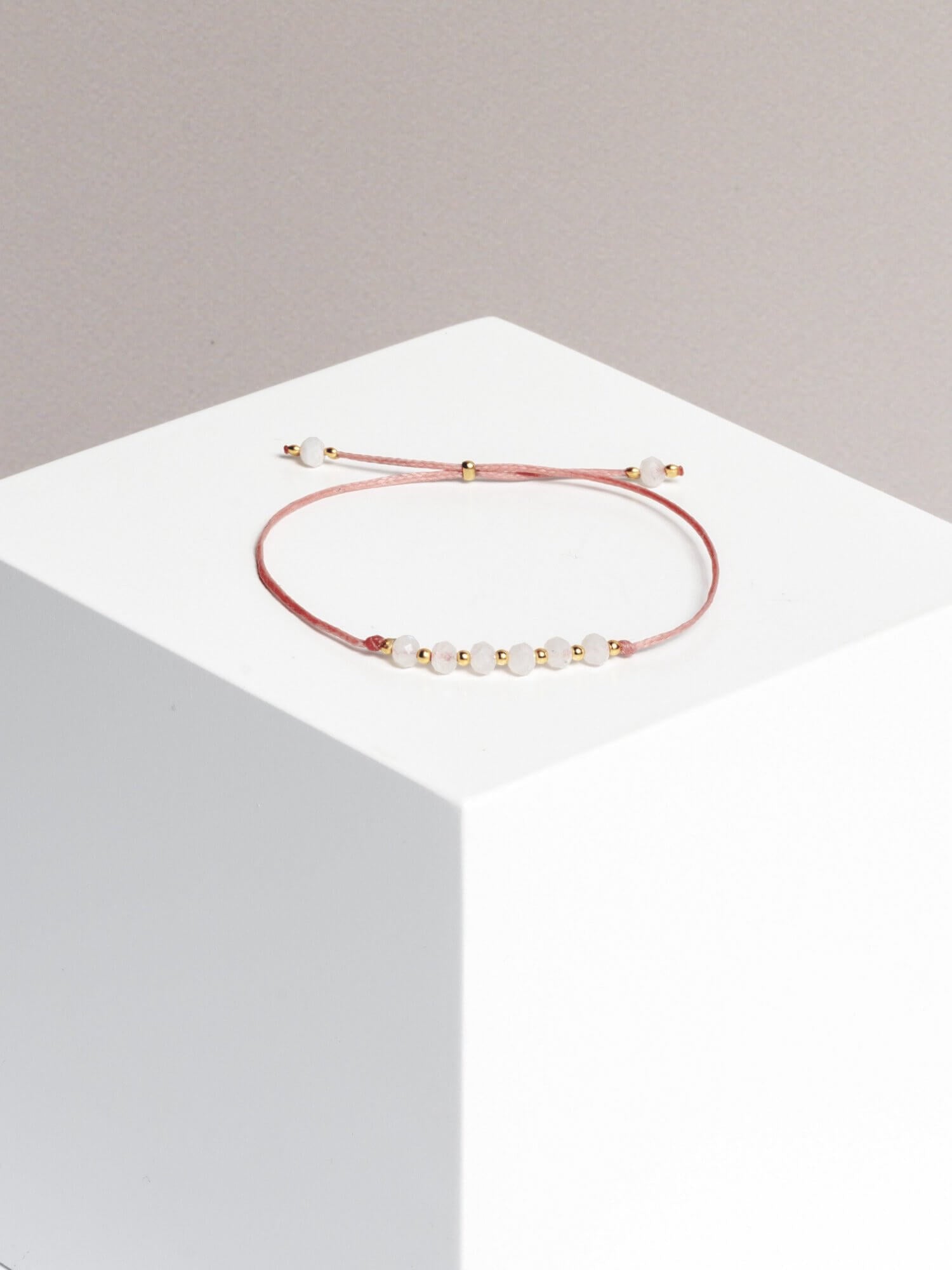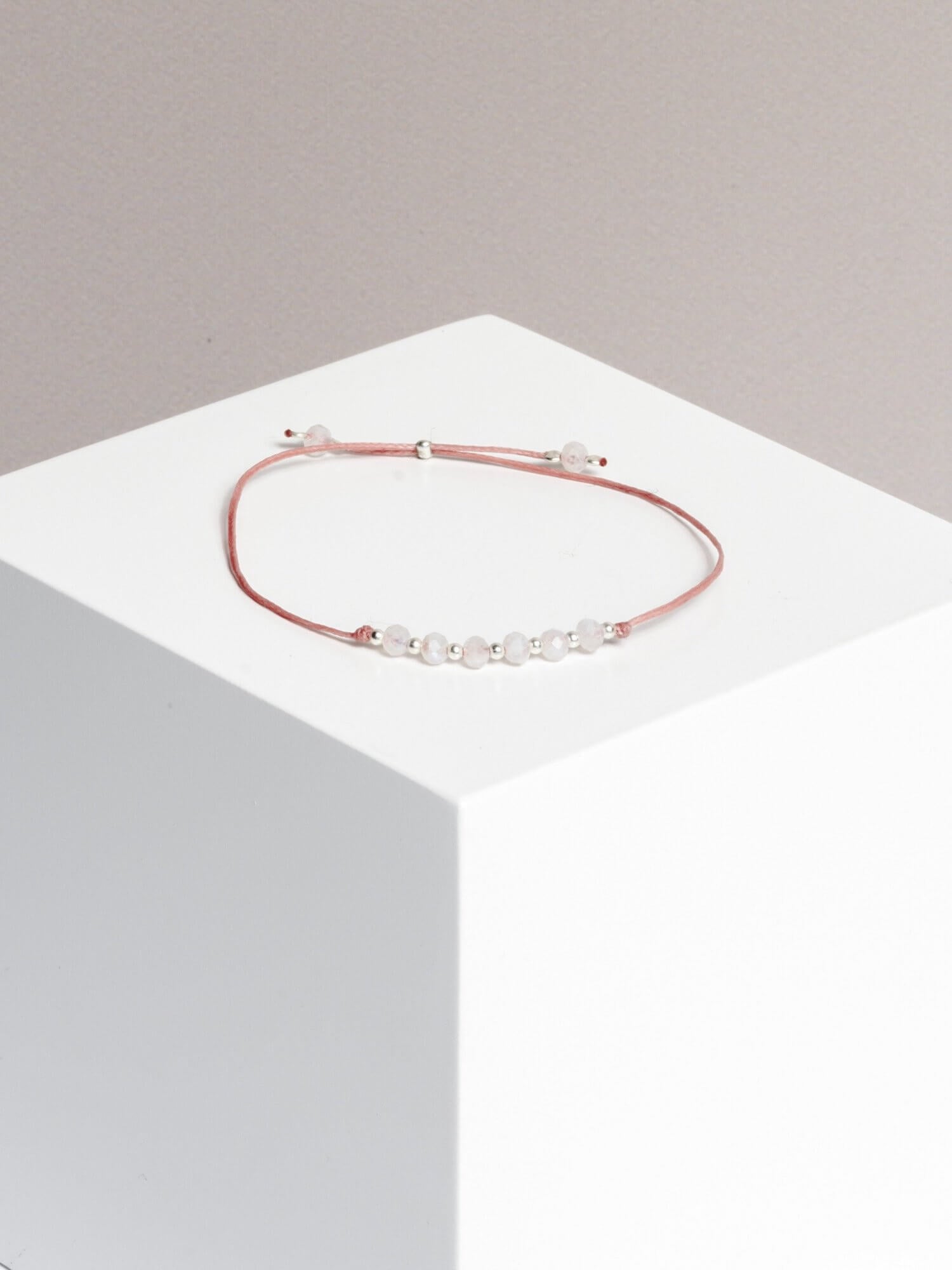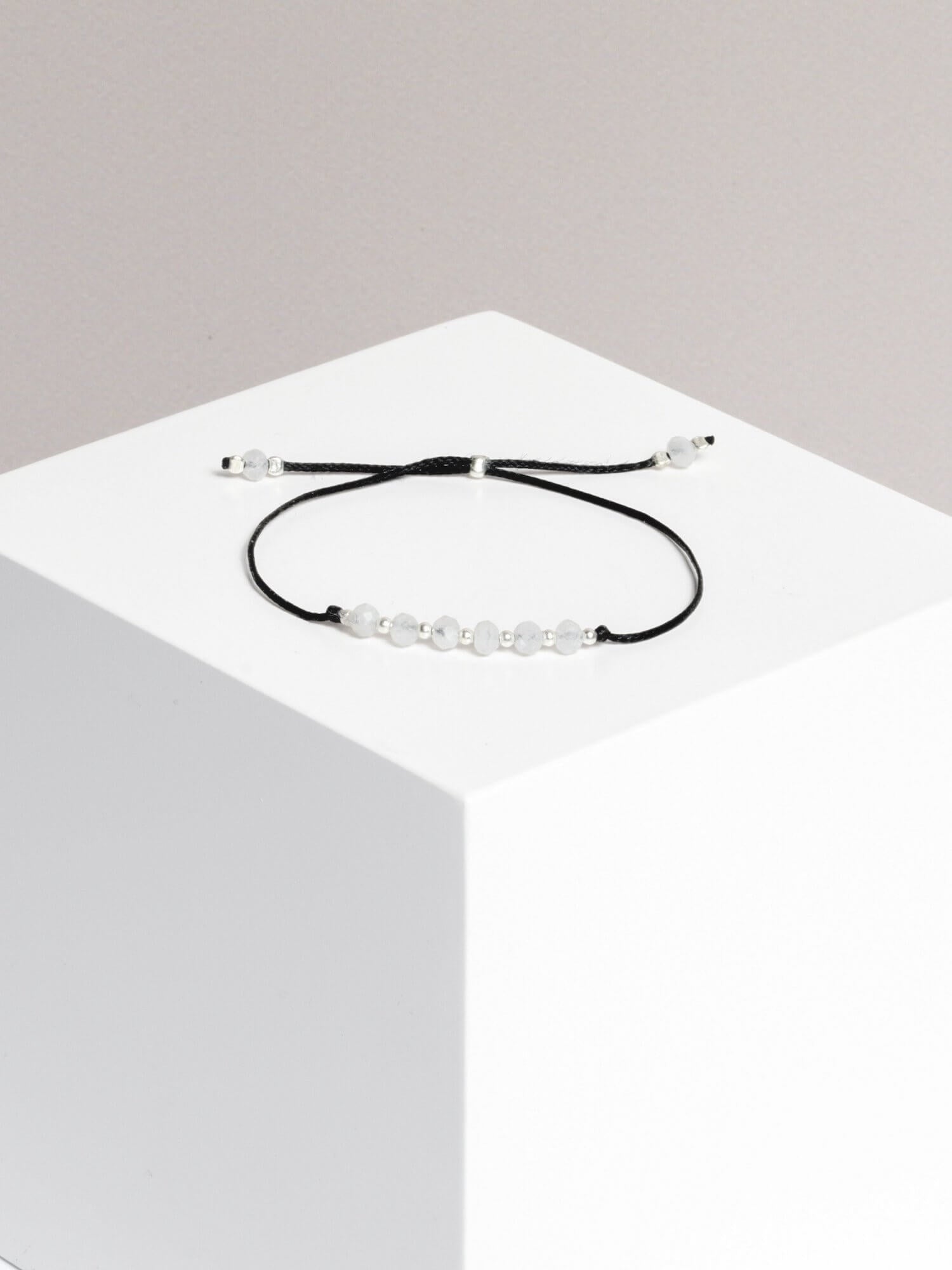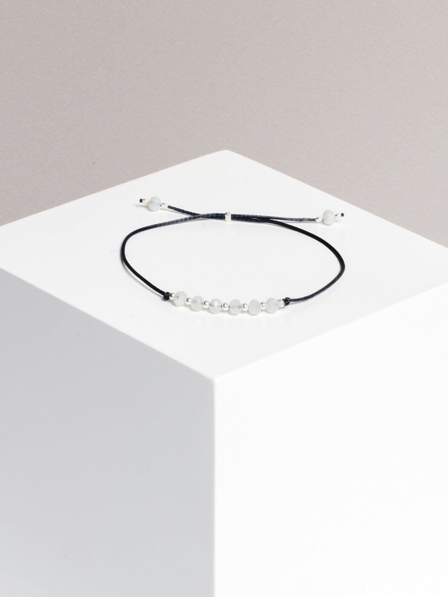 material: waxed thread, moonstone, gold plated / 925 silver beads