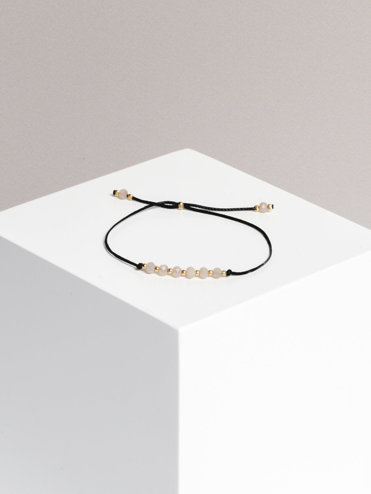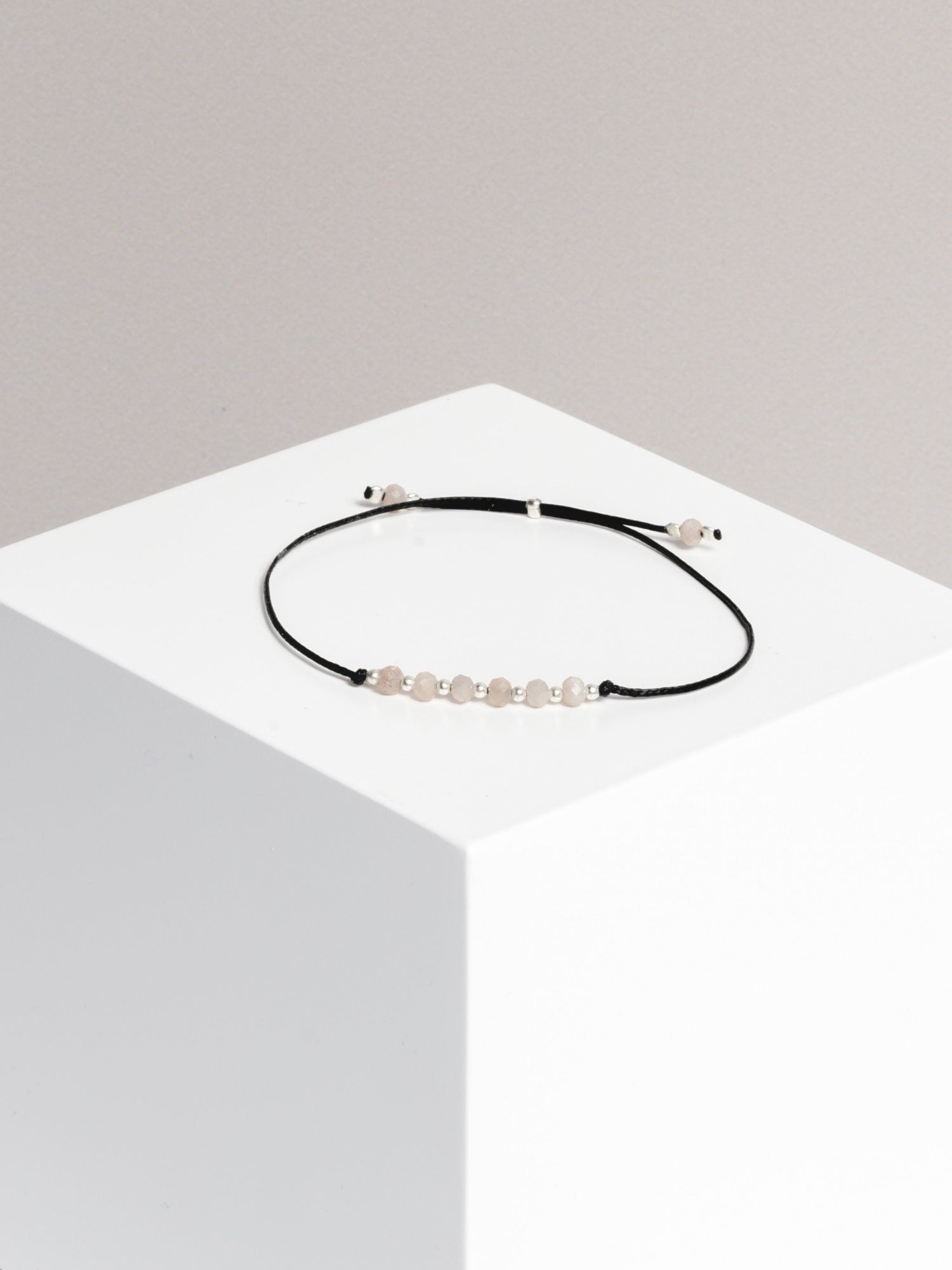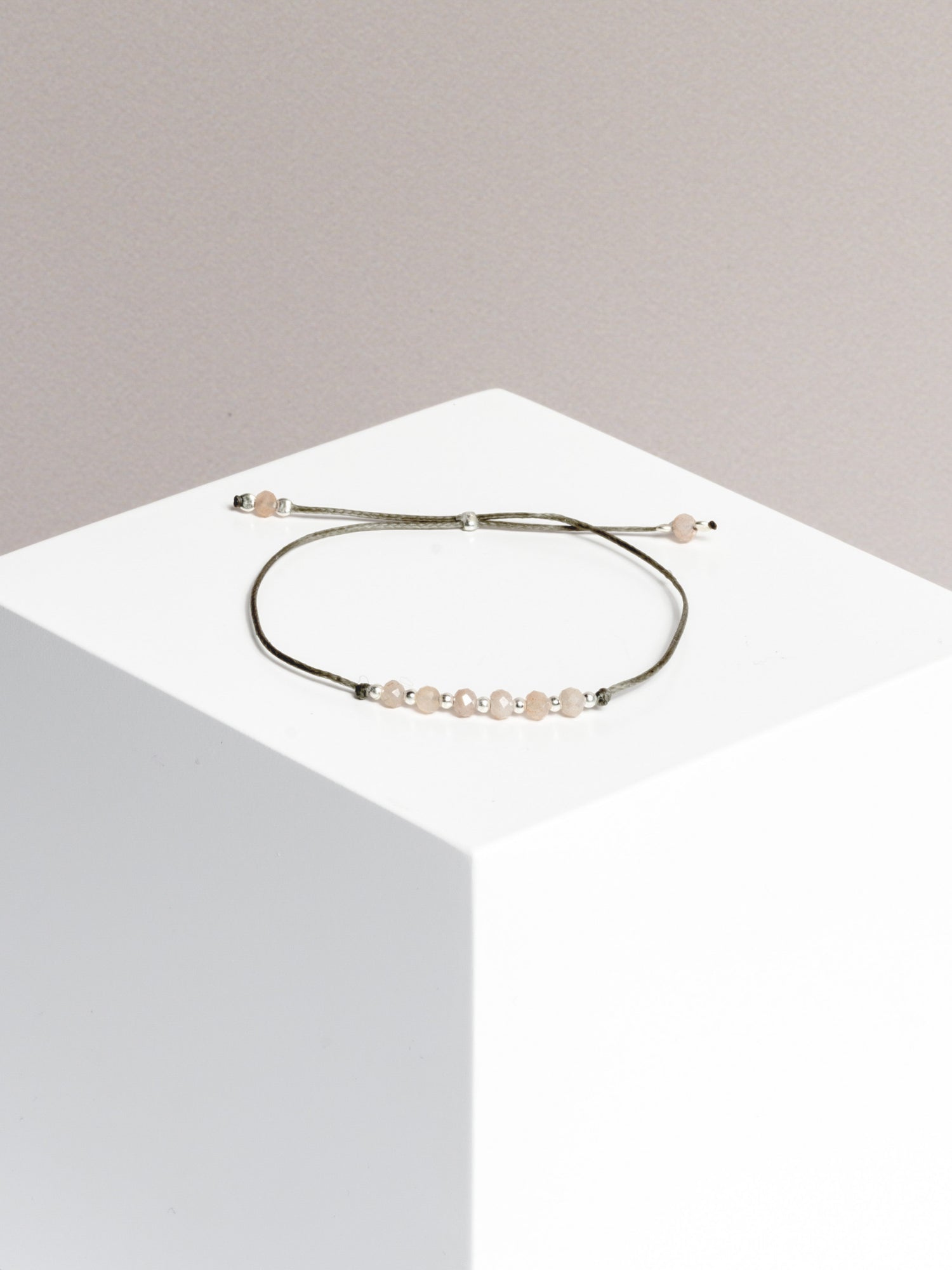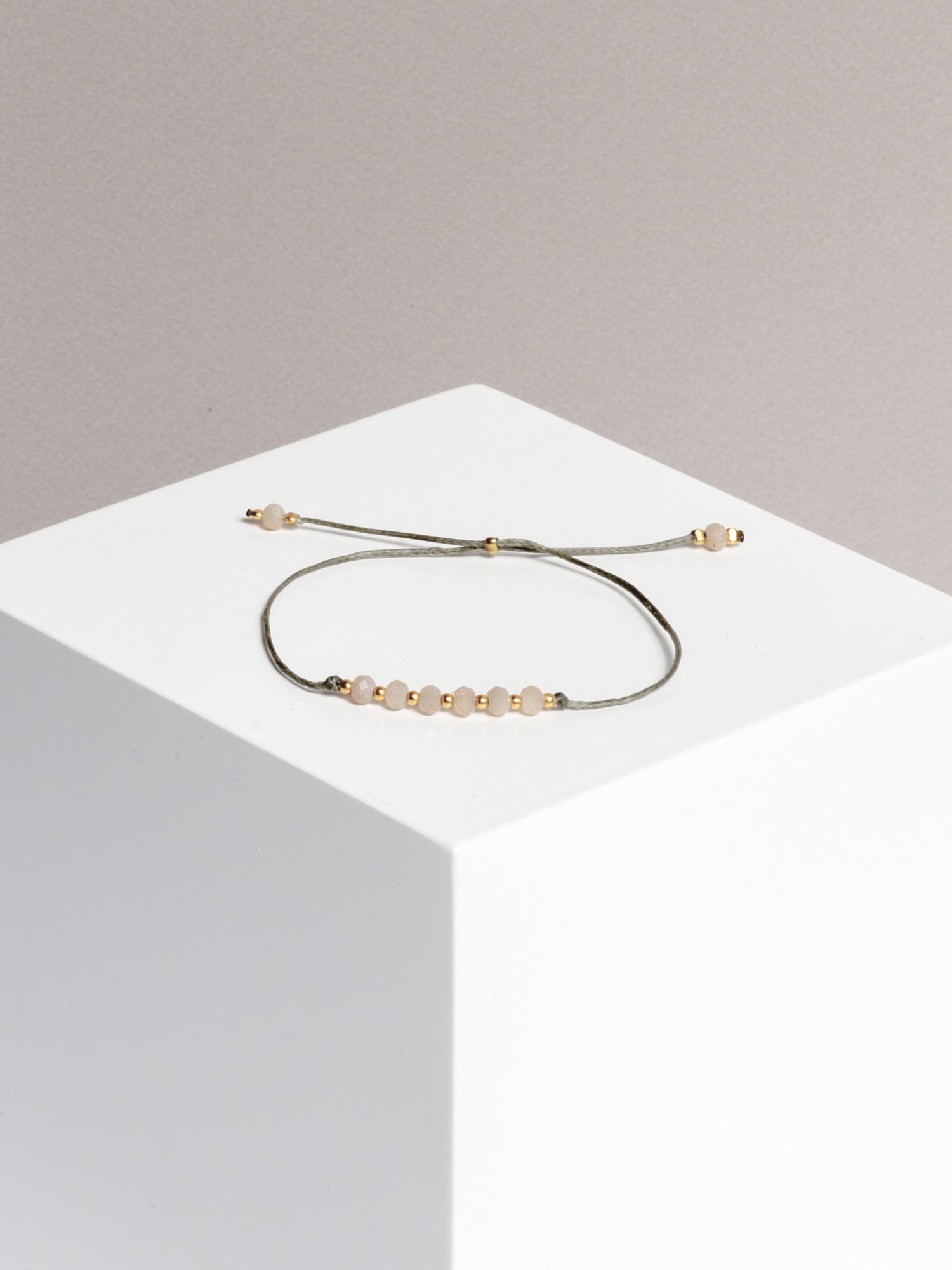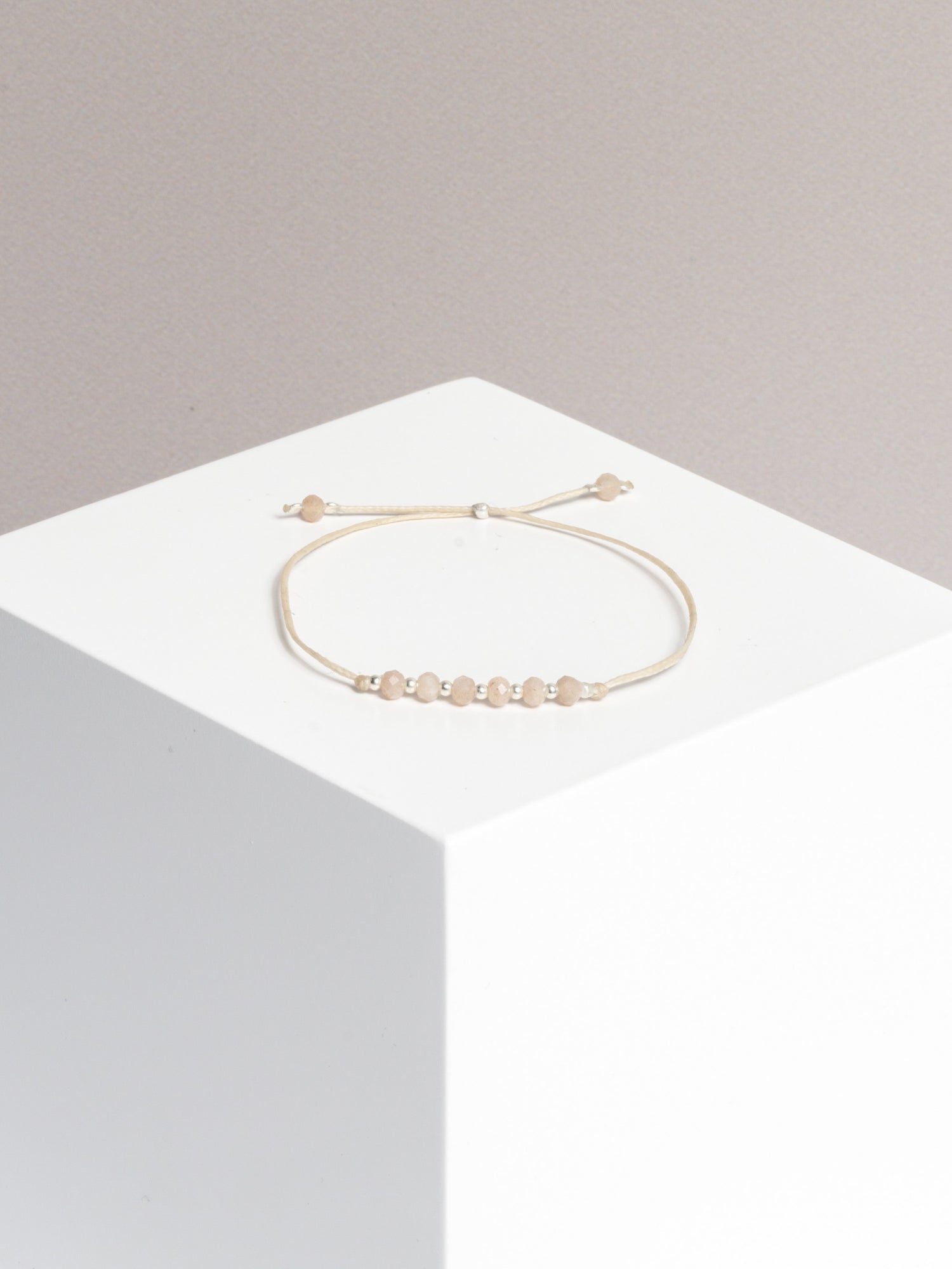material: waxed thread, peach moonstone, gold plated / 925 silver beads