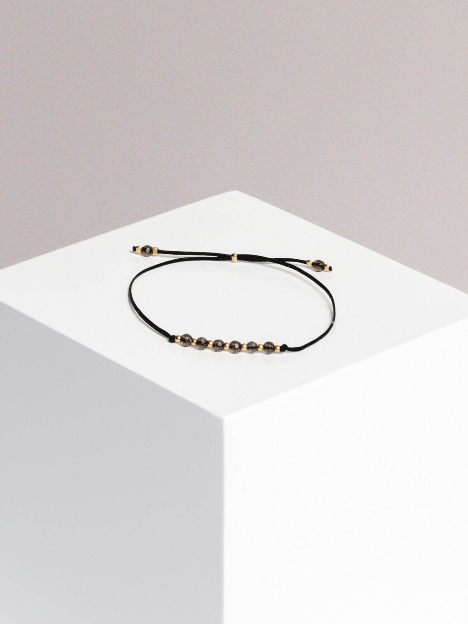 material: waxed thread, smoky quartz, gold plated / 925 silver beads