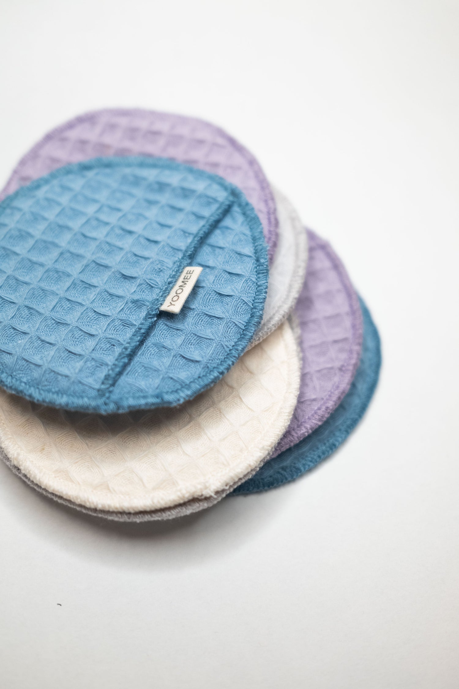 these cleaning pads are made out of soft waffle fabric. this set contains 7 pads, each in a different colour. the convenient opening for your fingers makes daily face cleaning very easy. if you use it with lukewarm water and add soap, it is a very pleasant skin experience. since it is made of 100% cotton, it is no problem to wash the pads at 60 degrees in the machine.