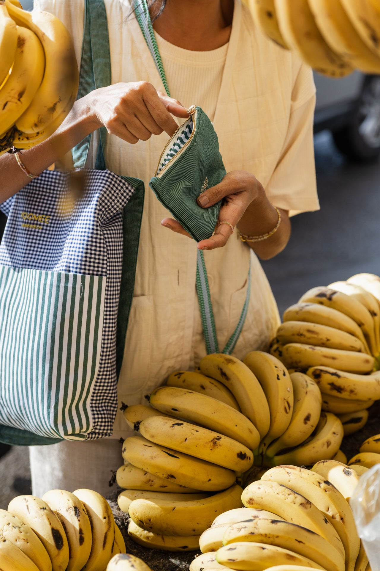 this colourful wallet is perfectly sized for some cards and coins or little things you like to carry around. it features unique cotton fabrics, a hand-embroidered logo and an intricate border along the zipper. it also has a cute little tassel on the zipper.