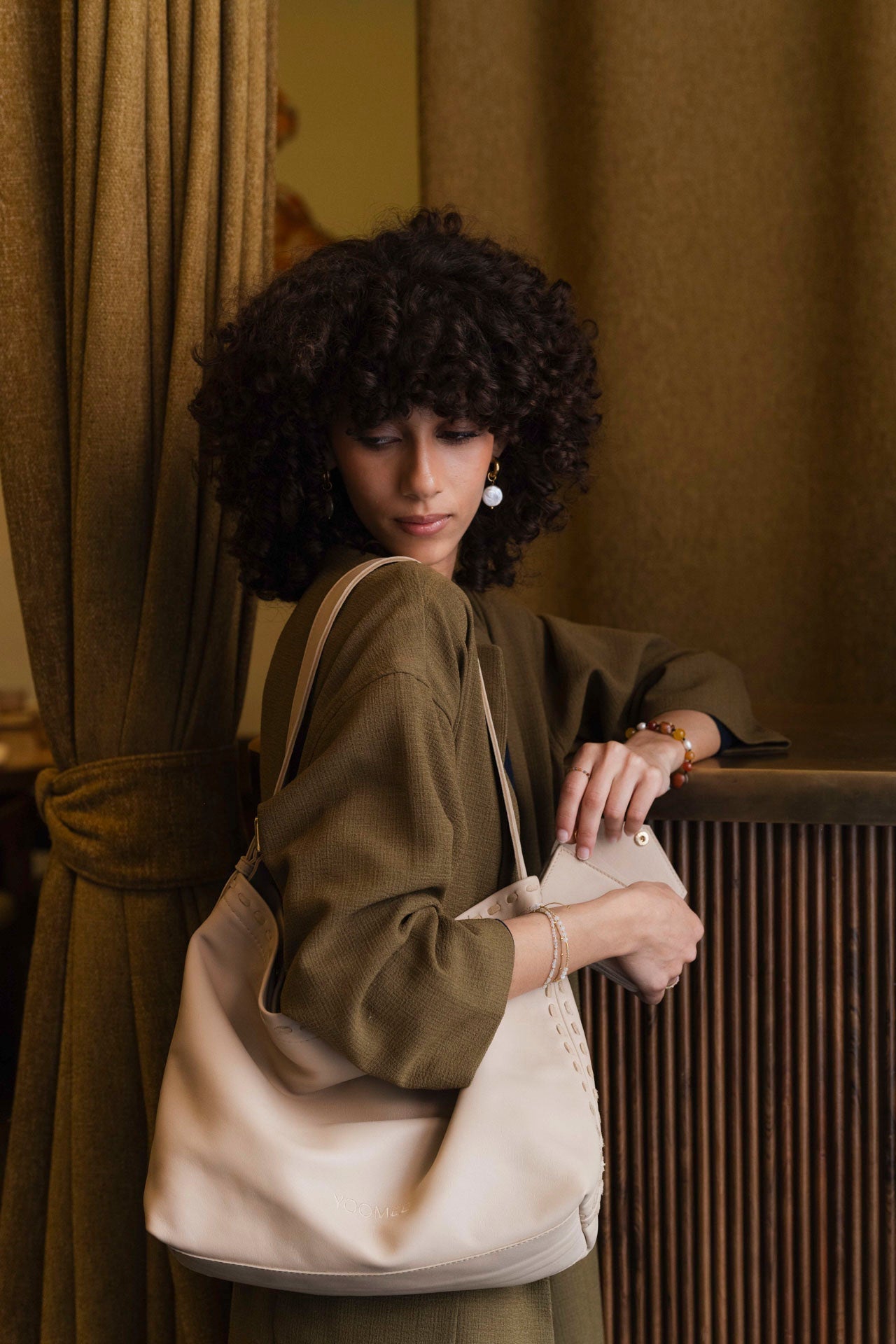 our jamila hoop earrings are unique pieces that bring together natural elegance and timeless style. made with real pearls, each earring is truly one of a kind. it has a lovely, balanced weight that makes it both comfortable and enjoyable to wear.