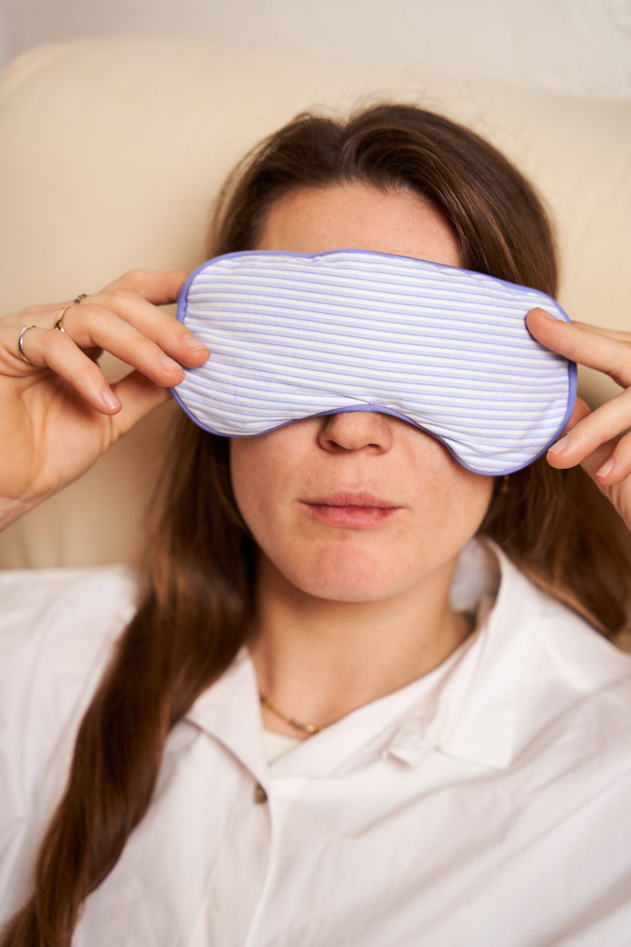 this eye mask is just what you need for a good night of sleep or a meditation moment. thanks to the filling of millet and lavender the pillows has a little weight that helps your tired eyes to relax. the lavender is known for its calming effect on our body. you can also warm and cool the whole pillow if you like. 40 sec. at 30° can keep the warmth up to 20min.