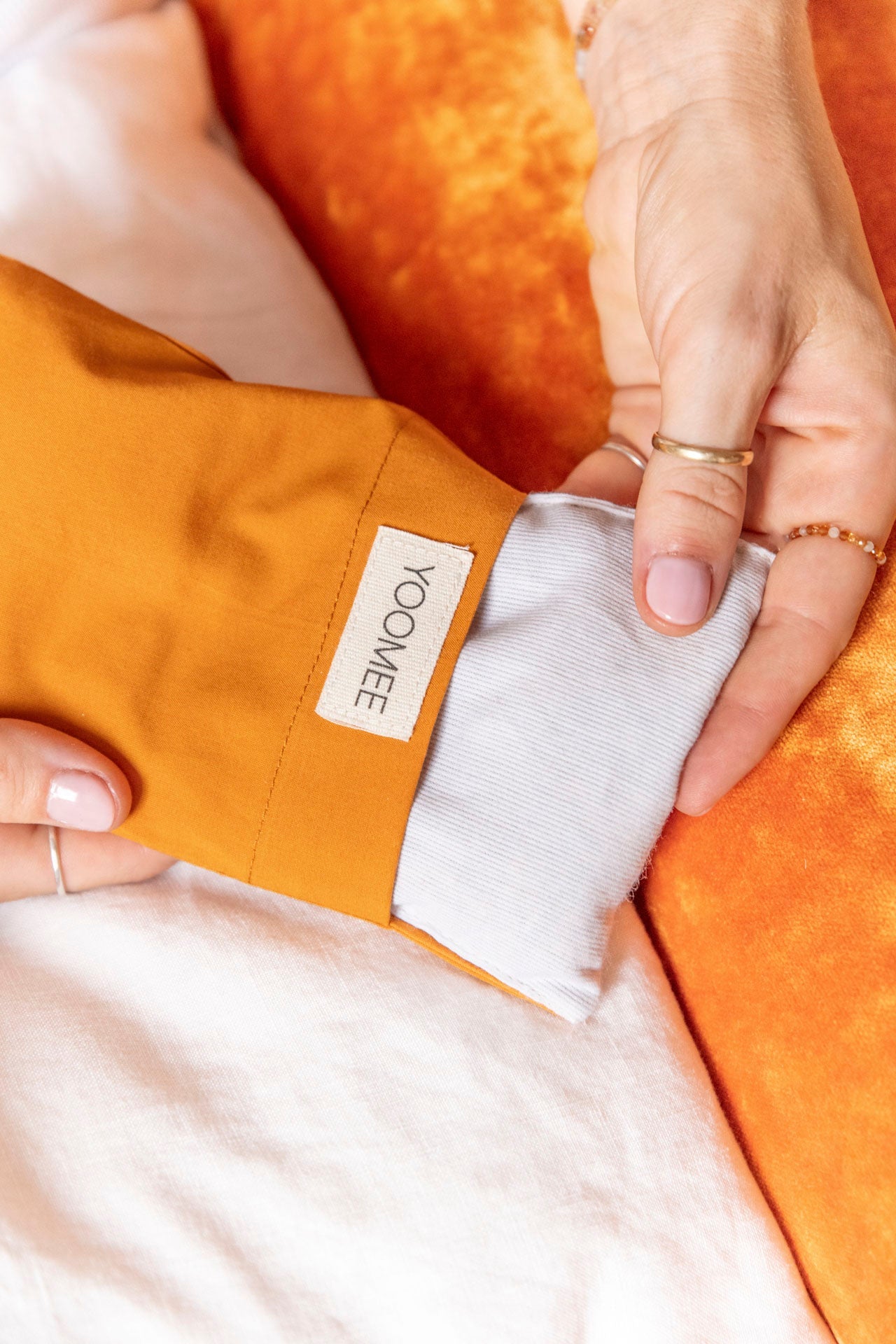 this eye pillow will offer you a moment of peace and calm. it is handmade by our women's association in the medina of marrakech. the inside pillow can be removed and the outer pillow can be hand washed. this eye pillow is scented with millet seeds and lavender. the pillow is embroidered by hand with the words "inhale exhale".