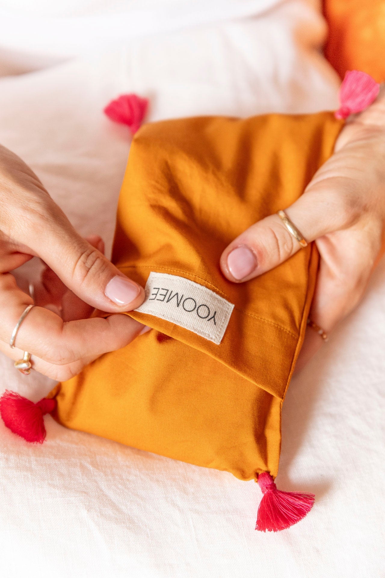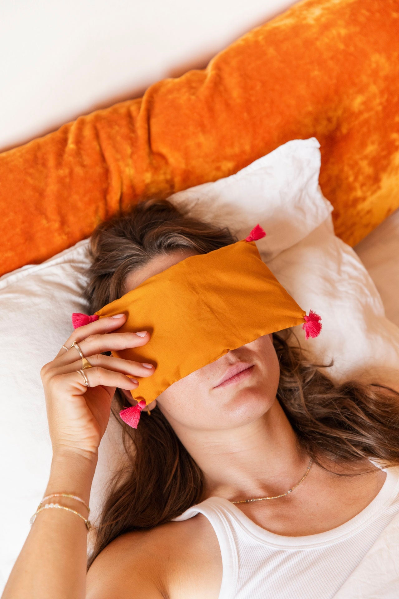 this eye pillow will offer you a moment of peace and calm. it is handmade by our women's association in the medina of marrakech. the inside pillow can be removed and the outer pillow can be hand washed. this eye pillow is scented with millet seeds and lavender. the pillow is neatly decorated by hand with 4 little tassels.