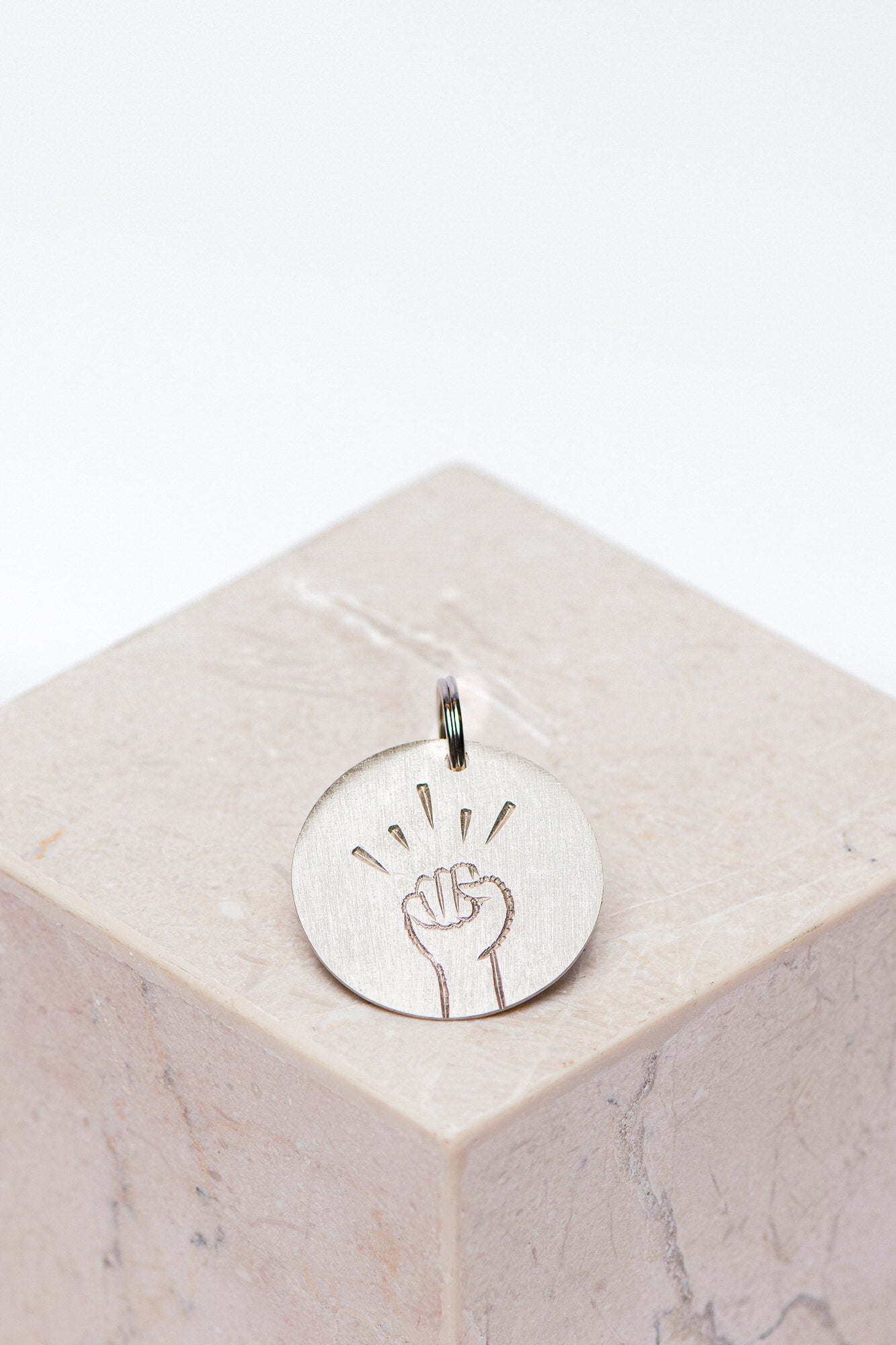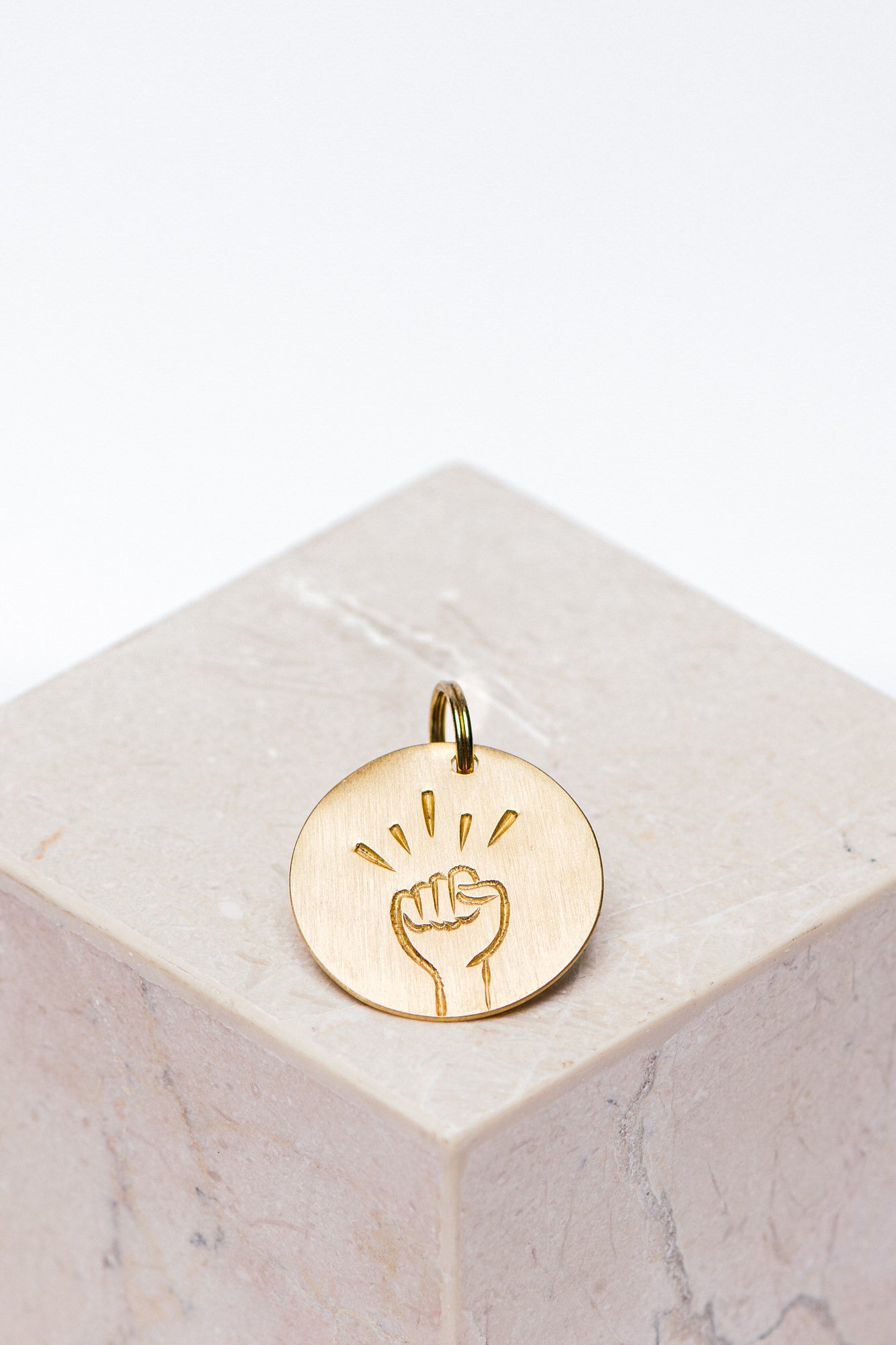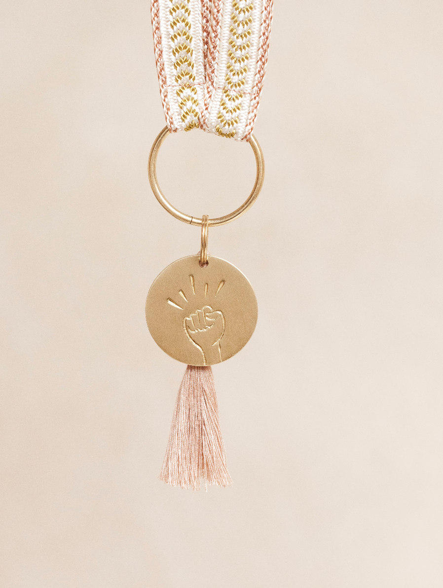each keytag is carefully created by soufiane, a moroccan artisan. after cutting the metal and brass plates out by hand, he then solders and engraves them, giving each pendant a uniqueness. not one is the same as another.