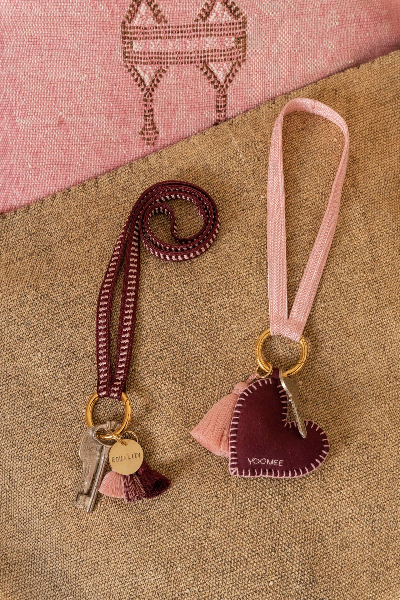 these keychains are made out of moroccan ribbons called sfifa. originally they are used for decorating traditional kaftans.
