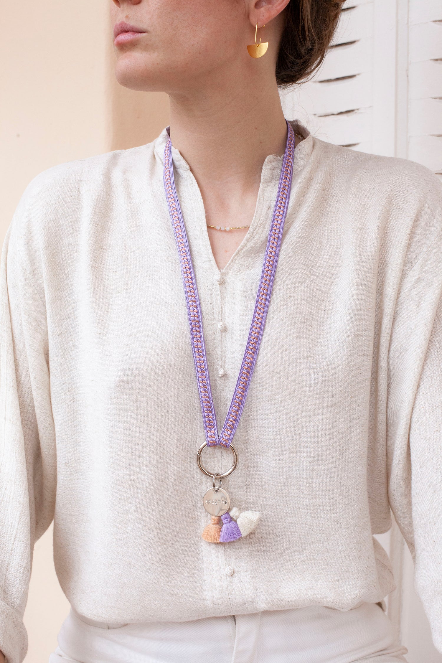these keychains are made out of moroccan ribbons called sfifa. originally they are used for decorating traditional kaftans.