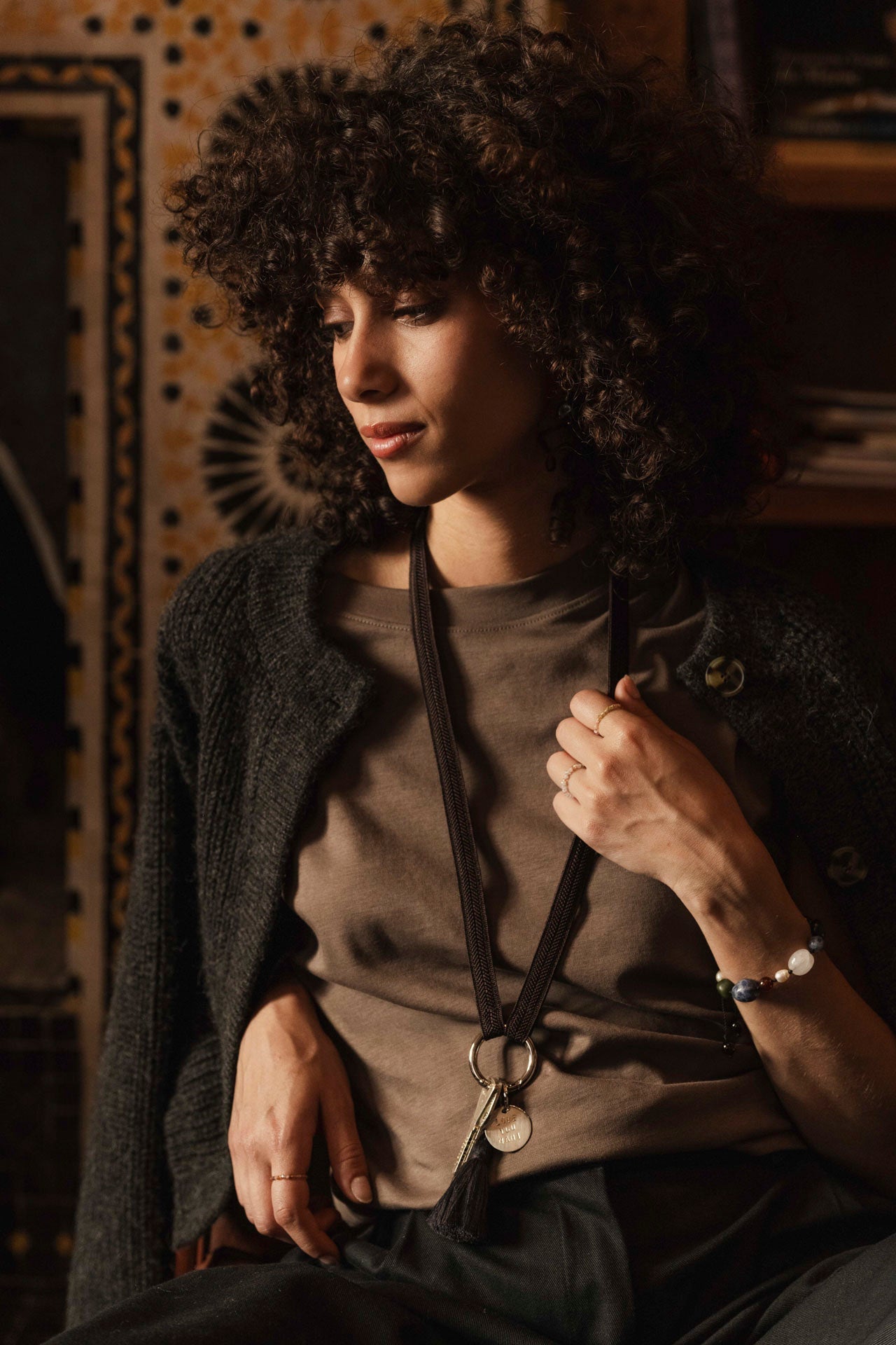 developing from ‘sabra’ to ‘sfifa’ the threads are transformed step by step into keychains. the threads are braided into ribbons on the outskirts of marrakech using an antique machine. the keychains are produced by fatima and touriya from our women’s association in marrakech.