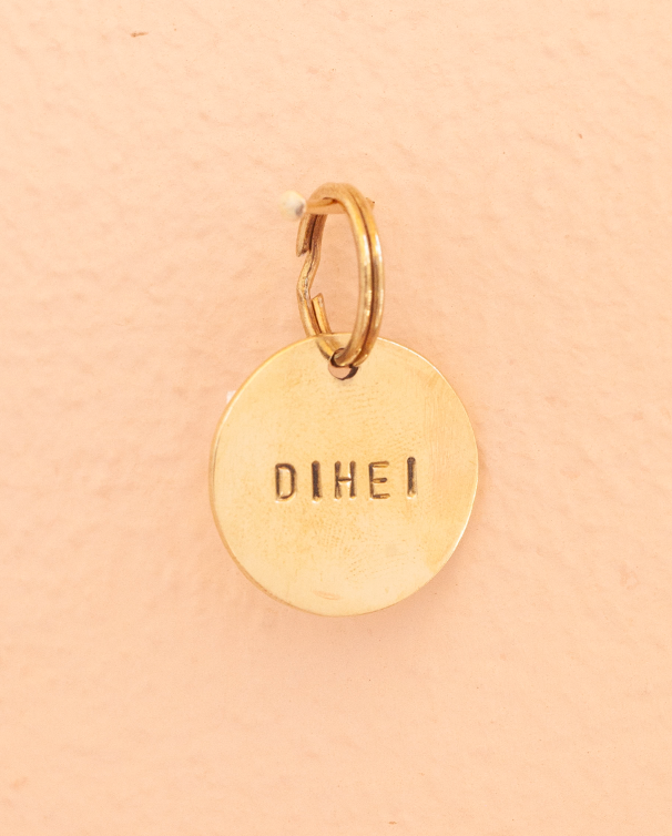 each key tag is carefully created by our moroccan artisan soufiane and his team. after cutting the metal and brass plates out by hand, he solders and engraves them, giving each pendant a uniqueness. not one is the same as another.