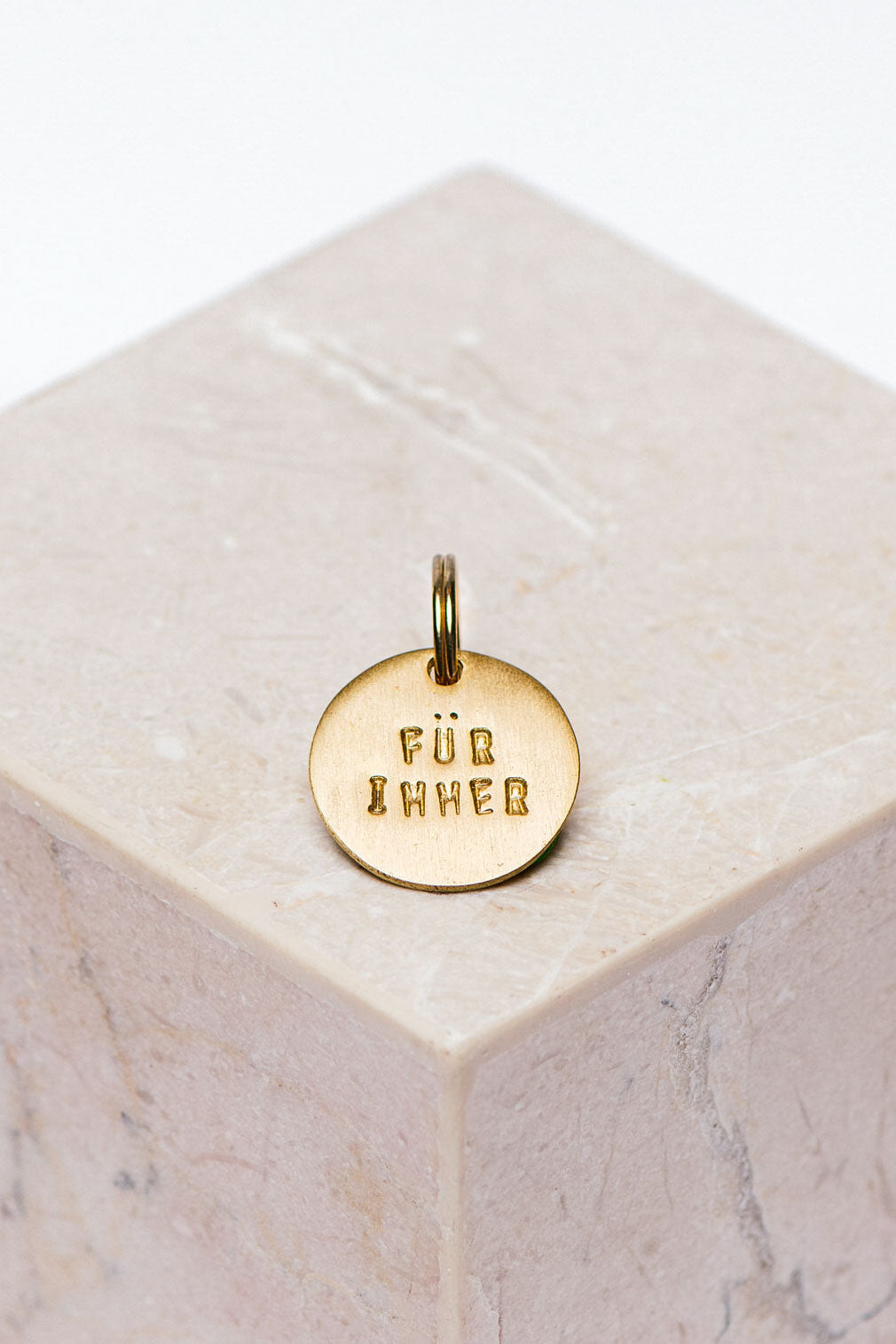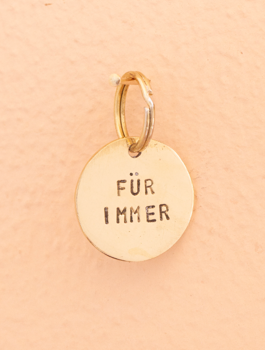 each key tag is carefully created by our moroccan artisan soufiane and his team. after cutting the metal and brass plates out by hand, he solders and engraves them, giving each pendant a uniqueness. not one is the same as another.