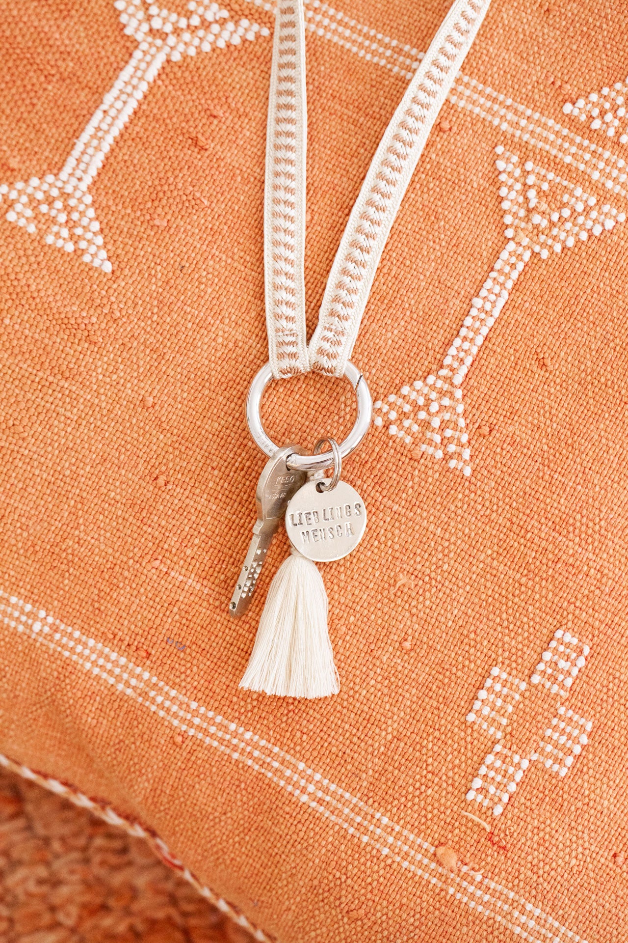 each key tag is carefully created by our moroccan artisan soufiane and his team. after cutting the metal and brass plates out by hand, he solders and engraves them, giving each pendant a uniqueness. not one is the same as another.