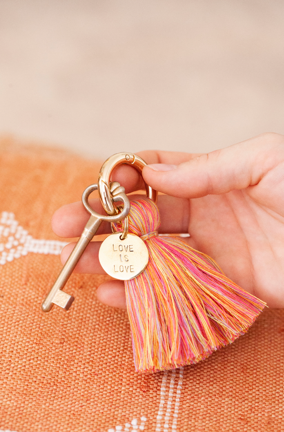 each key tag is carefully created by our moroccan artisan soufiane and his team. after cutting the metal and brass plates out by hand, he solders and engraves them, giving each pendant a uniqueness. not one is the same as another.