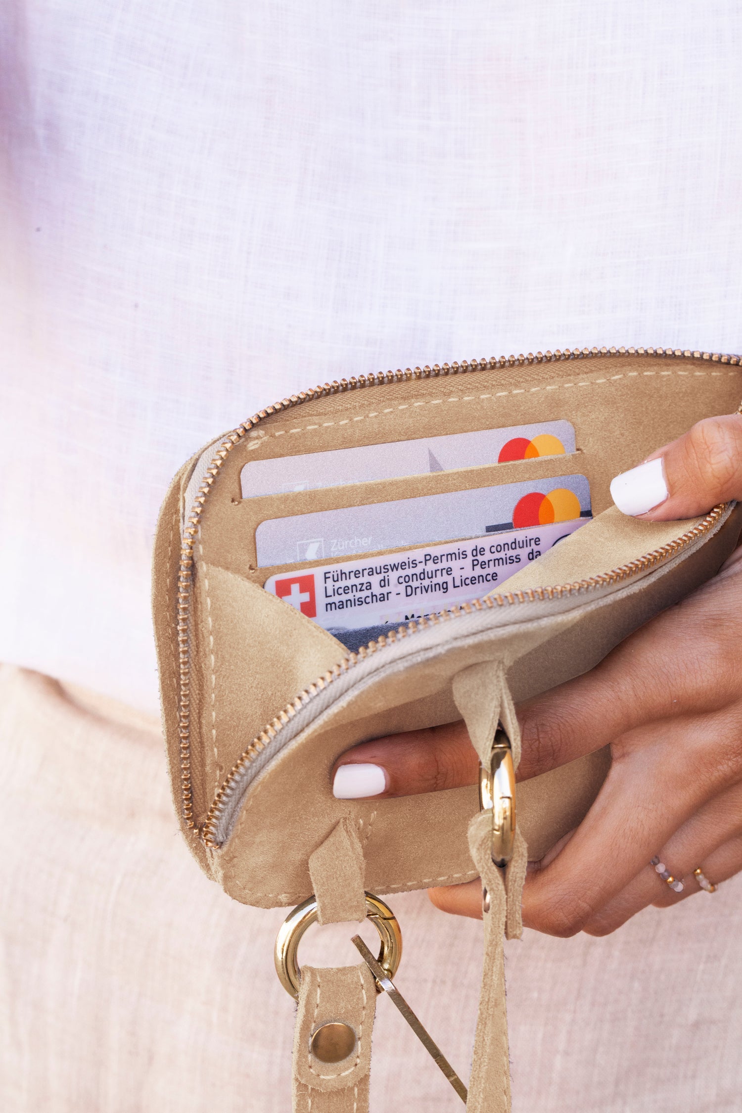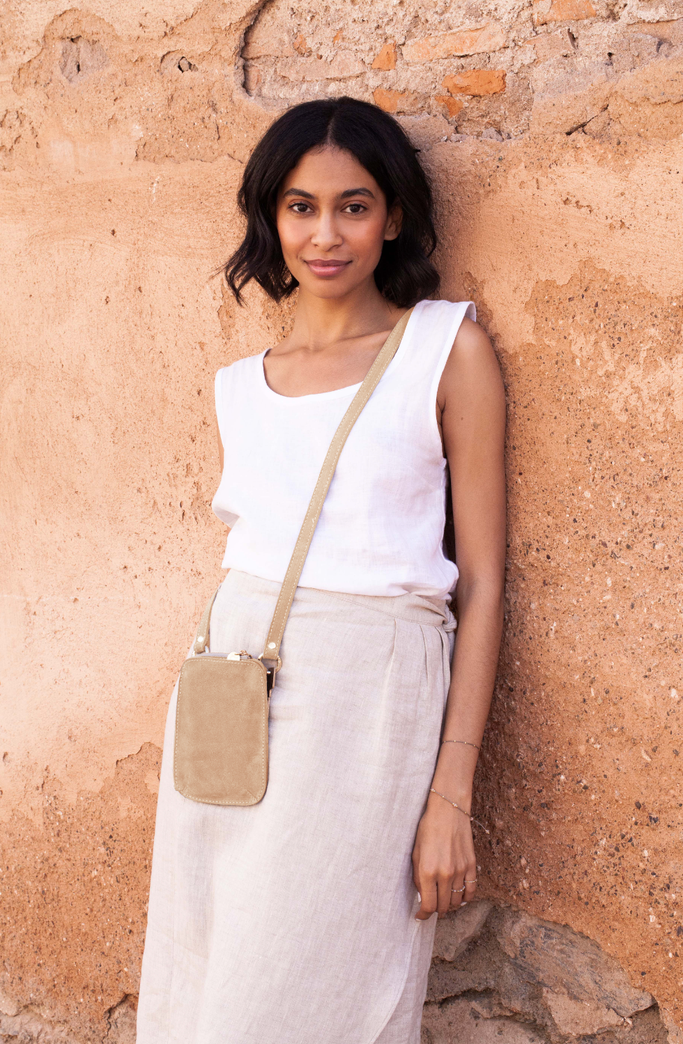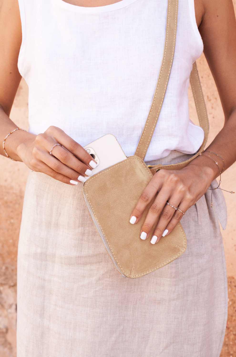 the practical rectangle phone case fits your most important things like mobile phone, cards, cash and keys. you can wear it as a crossbody this way you carry your most important things close and safe to your body.