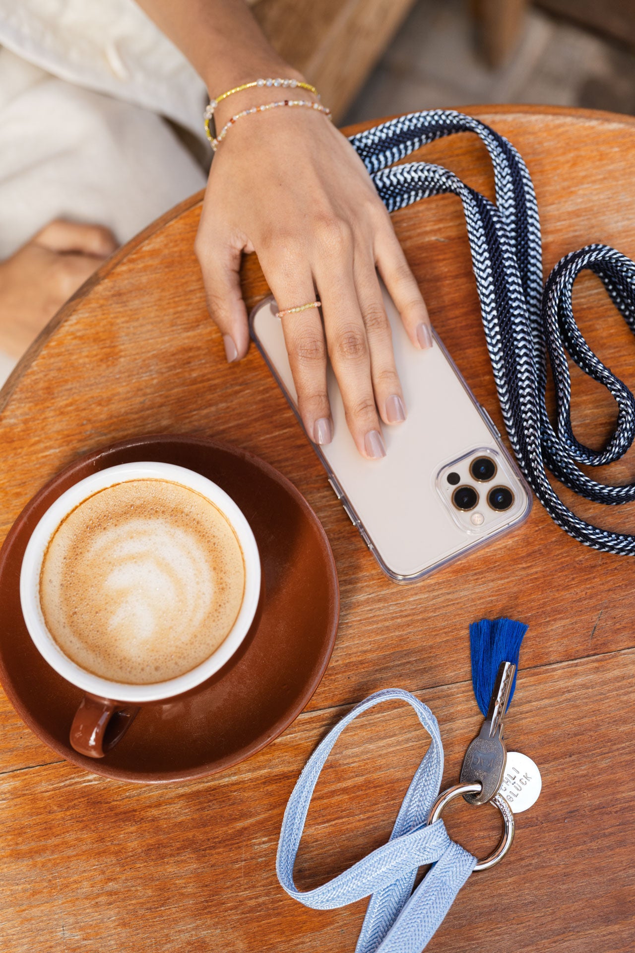 each band is crafted from 100% natural fibers, woven with precision on an intricate loom. afterward, it is carefully stitched by our women's association in marrakech. the band is extremely solid and durable, ensuring to keep your phone safe.