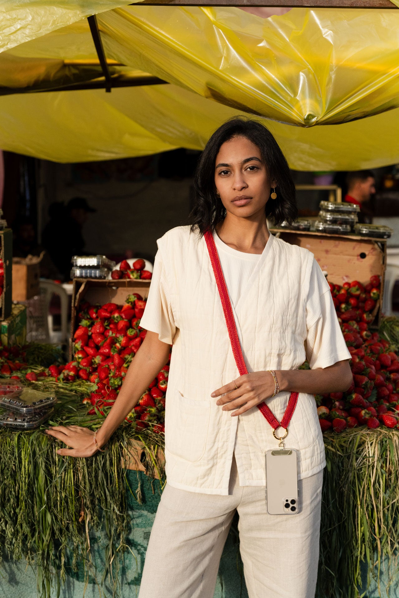 each band is crafted from 100% natural fibers, woven with precision on an intricate loom. afterward, it is carefully stitched by our women's association in marrakech. the band is extremely solid and durable, ensuring to keep your phone safe.