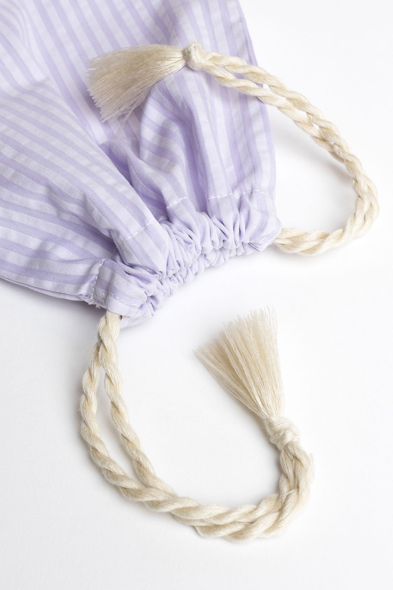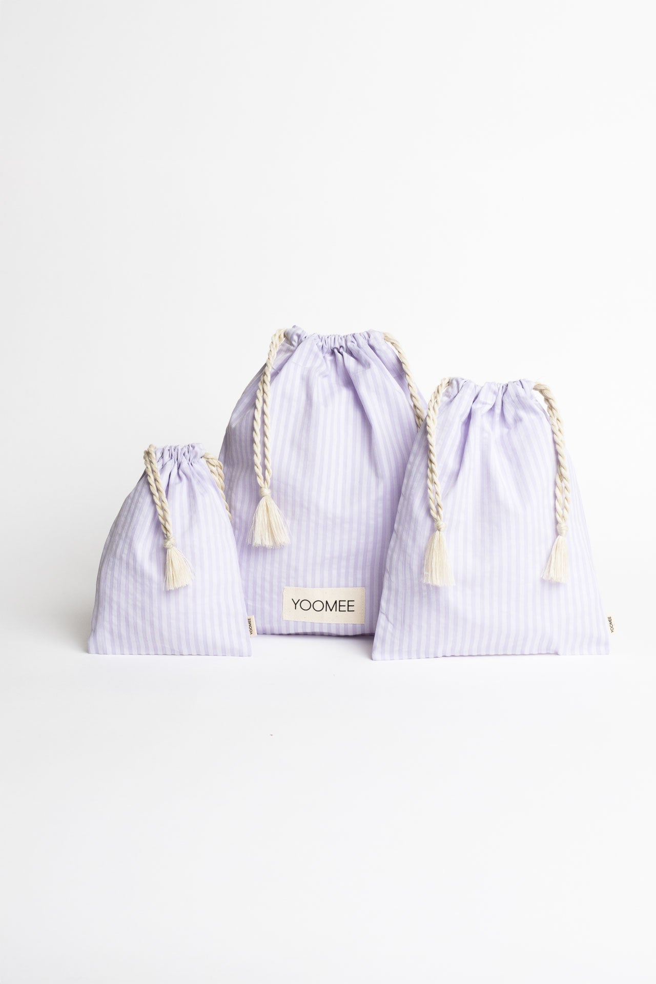 our little gift bag for all YOOMEE products – made exclusively from leftover fabrics to reduce waste and the beige cords are twisted by hand. the pouches are all made by our women's association in marrakech