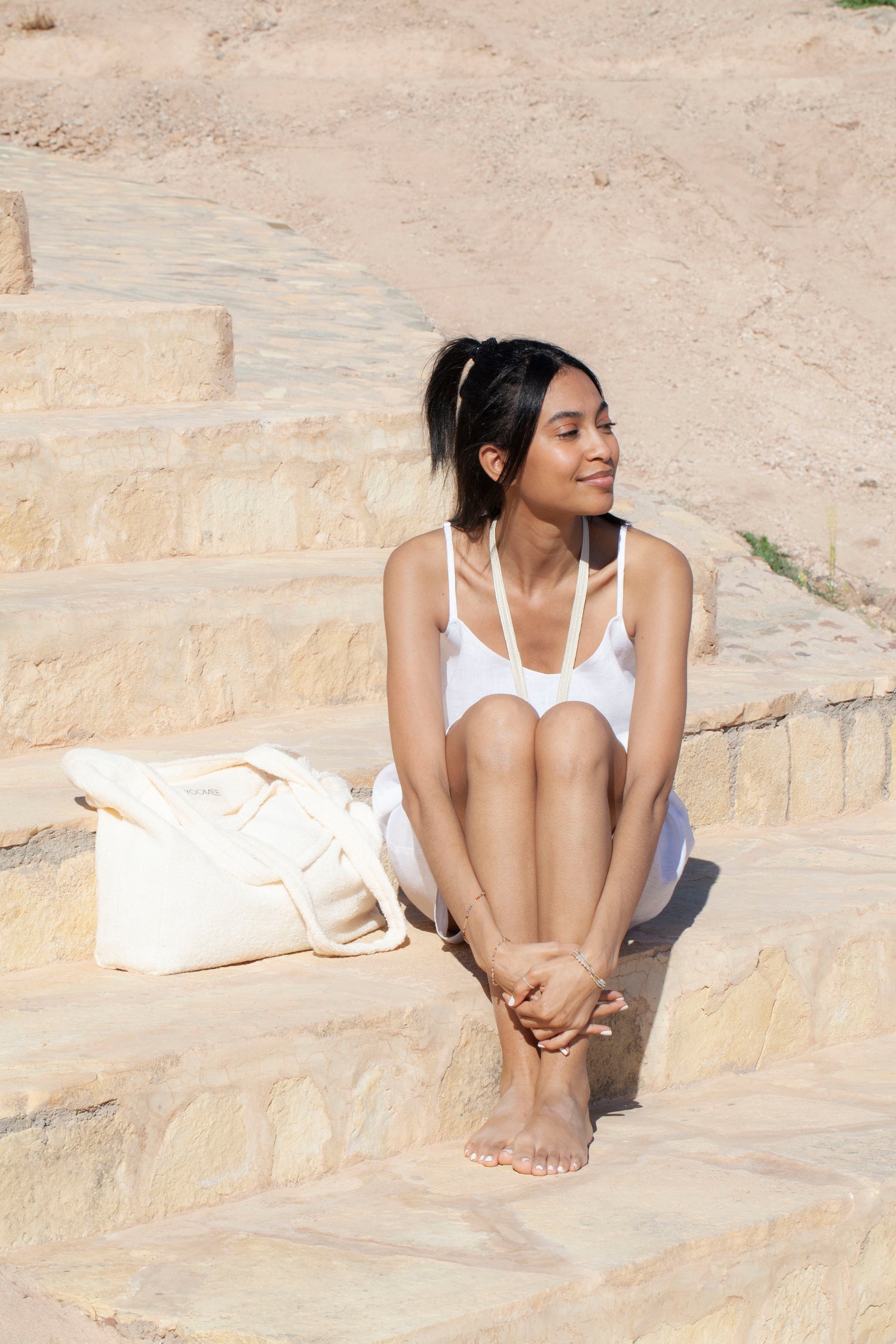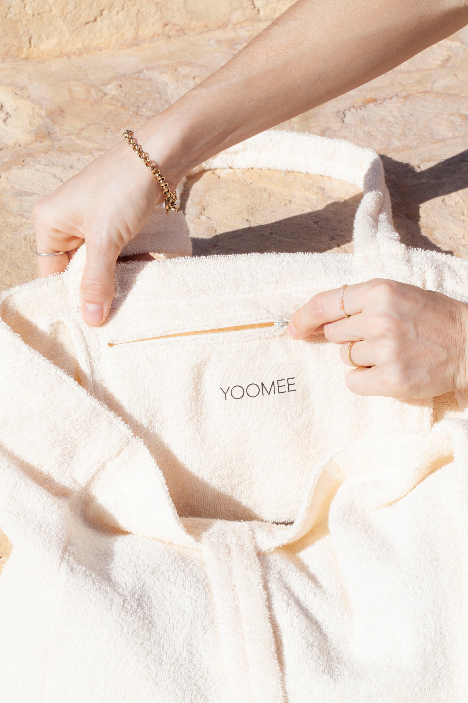 this bag is the perfect bag for all your things you need for a day at the river, lake or ocean. it is made out of fluffy cotton terry. in the inside you can find a pocket with zipper - like that you can keep your Important things safe. there is also a loop for your keys to keep your bag organized.