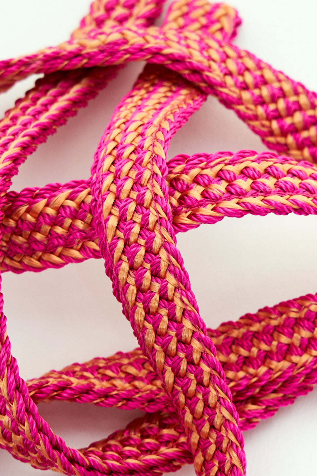 developing from ‘sabra’ to ‘sfifa’ the threads are transformed step by step into keychains. they are braided into ribbons on the outskirts of marrakech using an antique machine.