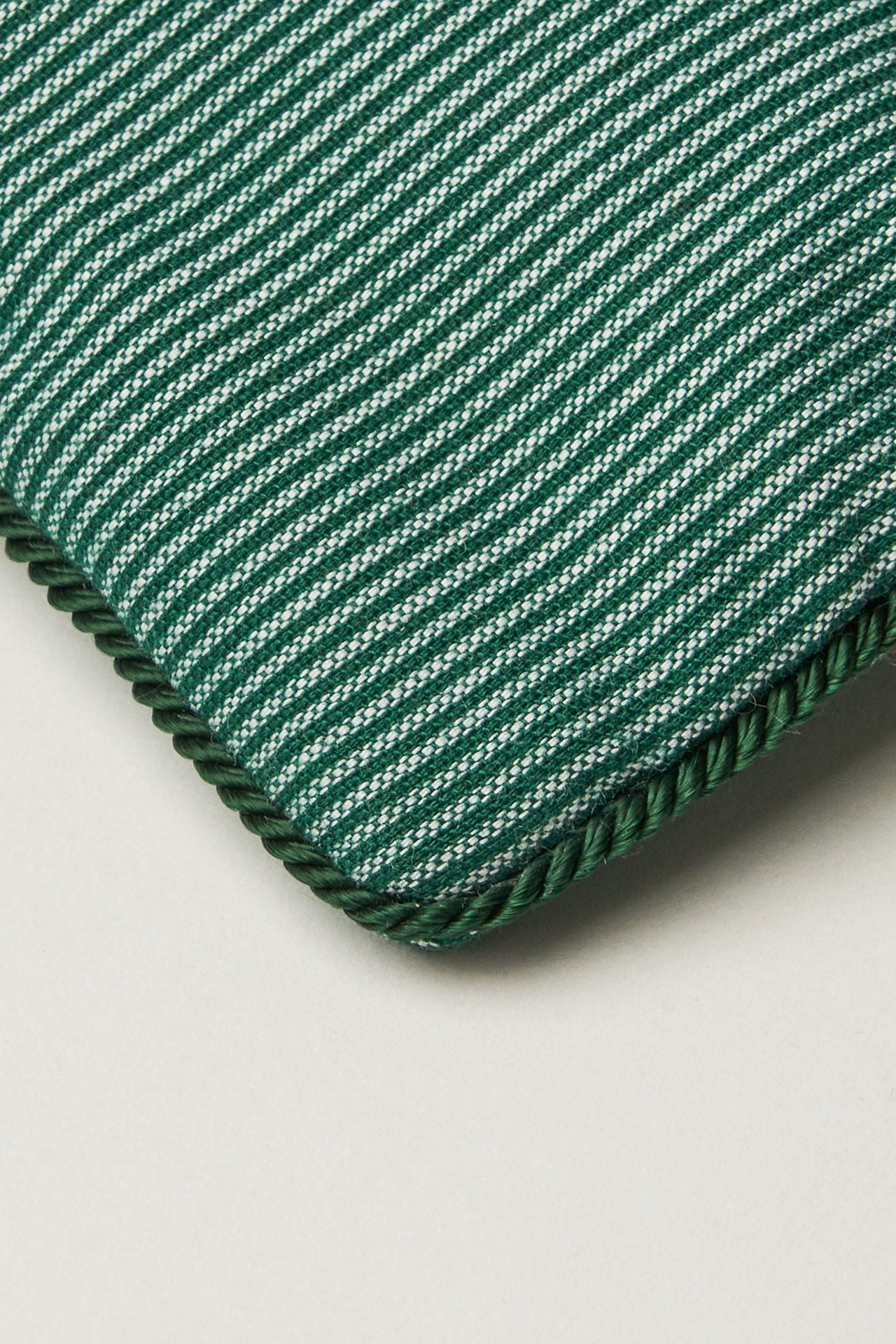 this colourful wallet is perfectly sized for some cards and coins or little things you like to carry around. it features unique cotton fabrics, a hand-embroidered logo and an intricate border along the zipper. it also has a cute little tassel on the zipper.